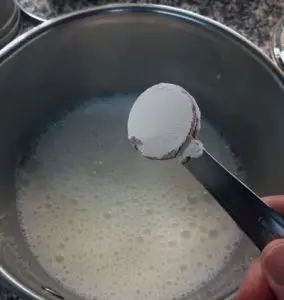 - En una olla a temperatura media agregar la las dos tazas de leche y la harina